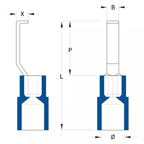 Izolowane złącza przewodów z haczykowatą tuleją miedzianą oraz stożkowym wkładem zgodne z ESI 50-18, część 2.
