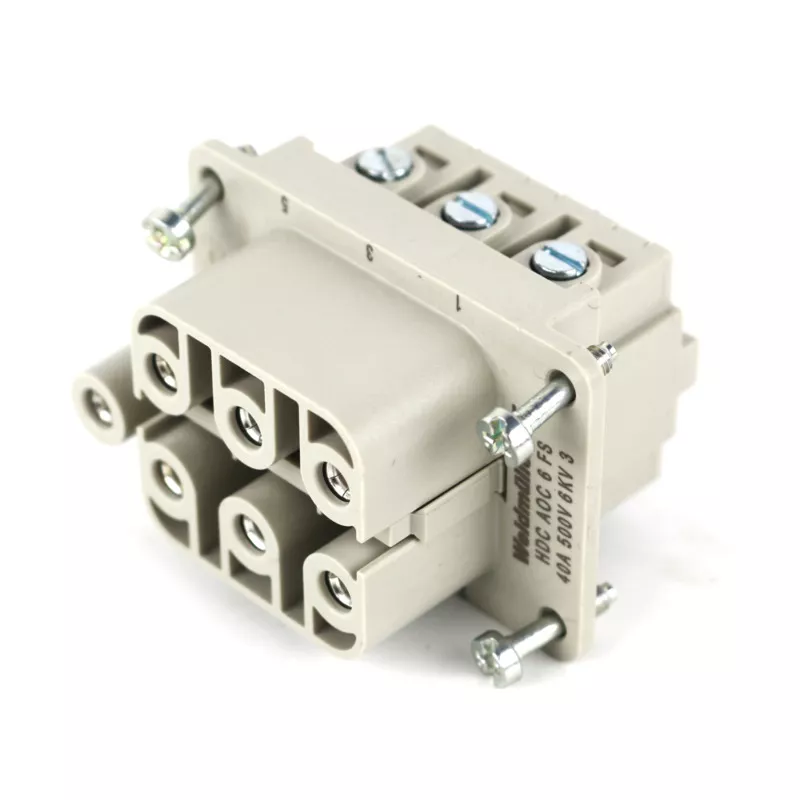 Wkładka dla wtykowych łączników przemysłowych, skłądająca się z elementu stycznego i izolacji.