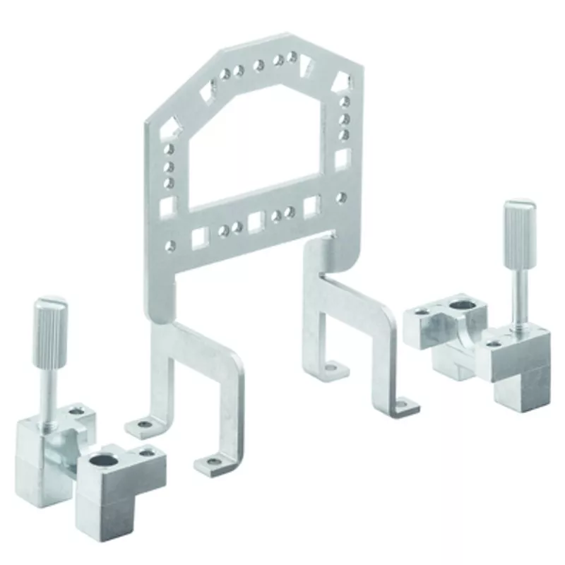 Ciężkie złącza wtykowe są montowane w szafach rozdzielczych, przepustach ścian grodziowych i ramach pomocniczych nie zawsze z użyciem obudów HDC. Jeśli montaż ze względu na koszty lub ciężar elementów ma odbyć się bez obudowy do nabudowania lub obudowy wtyku, Weidmüller oferuje wyrafinowane rozwiązanie do bezpiecznego połączenia w postaci uchwytu z blachy.