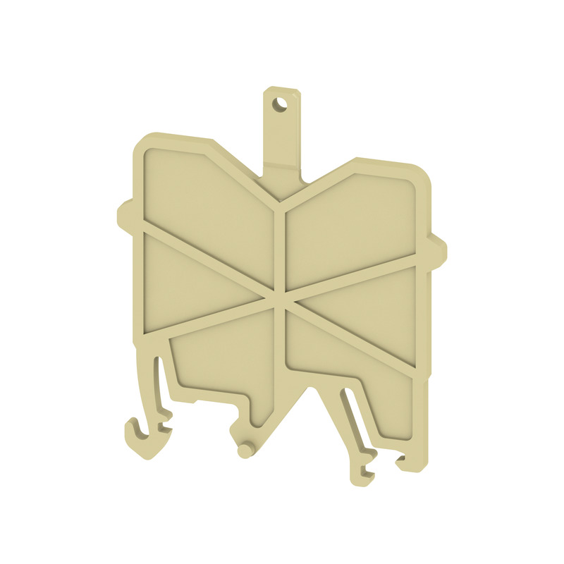 Płyta krańcowa i środkwa do ochrony przed dotykiem części czynnych bloków zaciskowych. Płyta służy również do optycznie rozpoznawalnej separacji obwodów elektrycznych w celu uniknięcia błędów w okablowaniu.