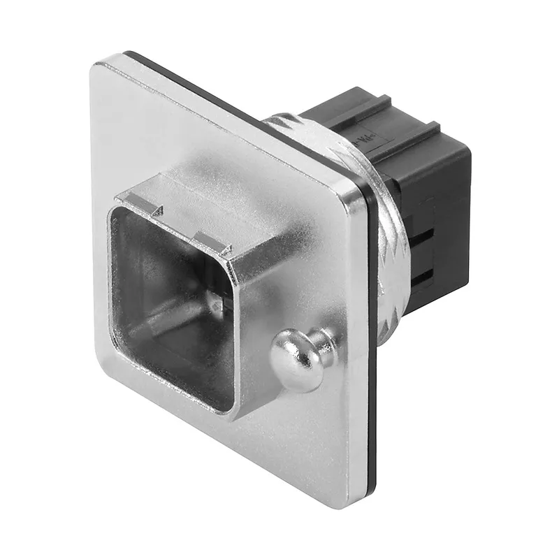 Pusta obudowa specjalnie przystosowana do przemysłowych złącz Ethernet.