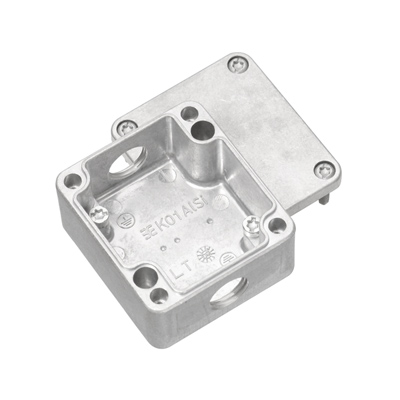 Obudowa metalowa do zastosowań przemysłowych. Otwory mocujące znajdują się poza uszczelnionym obszarem. Montaż ścienny można uzyskać za pomocą otworów montażowych lub nóżek montażowych.