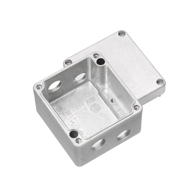 Obudowa metalowa do zastosowań przemysłowych. Otwory mocujące znajdują się poza uszczelnionym obszarem. Montaż ścienny można uzyskać za pomocą otworów montażowych lub nóżek montażowych.