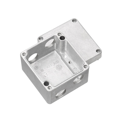 Obudowa metalowa do zastosowań przemysłowych. Otwory mocujące znajdują się poza uszczelnionym obszarem. Montaż ścienny można uzyskać za pomocą otworów montażowych lub nóżek montażowych.