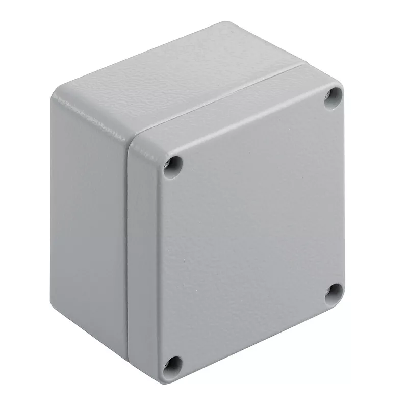 Obudowa metalowa do zastosowań przemysłowych. Otwory mocujące znajdują się poza uszczelnionym obszarem. Montaż ścienny można uzyskać za pomocą otworów montażowych lub nóżek montażowych.