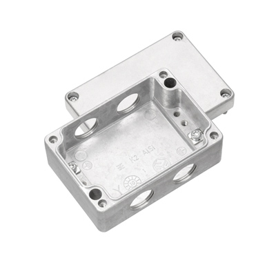 Obudowa metalowa do zastosowań przemysłowych. Otwory mocujące znajdują się poza uszczelnionym obszarem. Montaż ścienny można uzyskać za pomocą otworów montażowych lub nóżek montażowych.