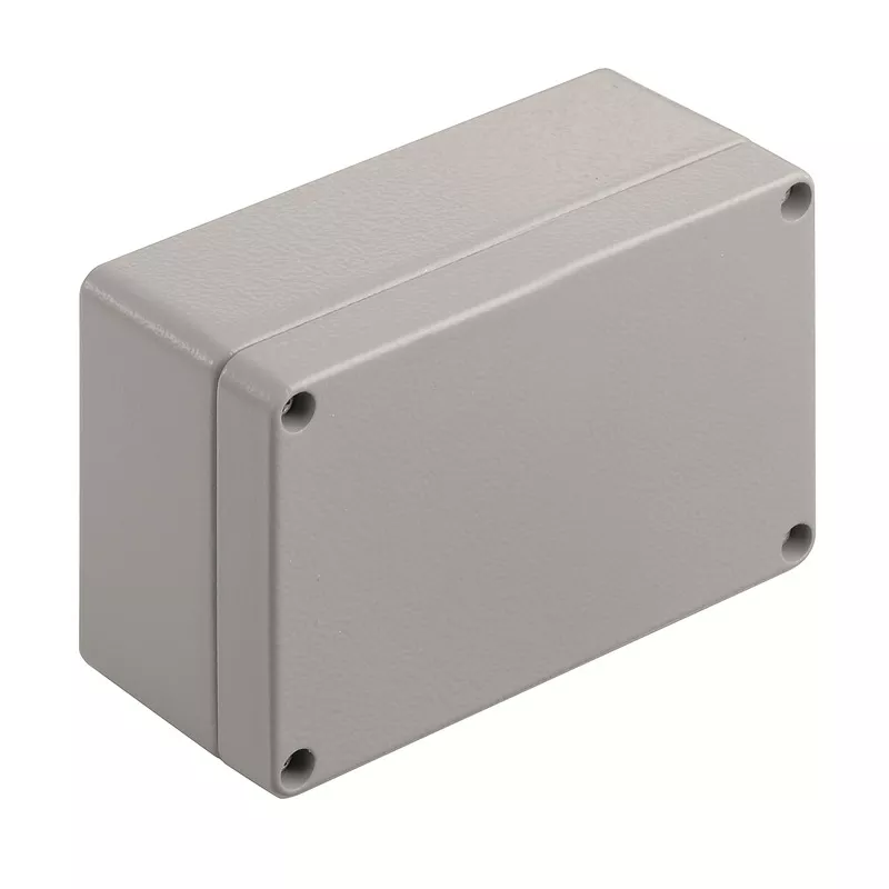 Obudowa metalowa do zastosowań przemysłowych. Otwory mocujące znajdują się poza uszczelnionym obszarem. Montaż ścienny można uzyskać za pomocą otworów montażowych lub nóżek montażowych.
