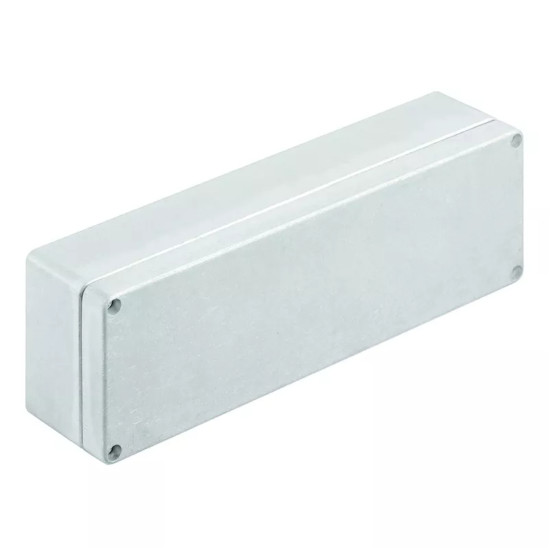 Obudowa metalowa do zastosowań przemysłowych. Otwory mocujące znajdują się poza uszczelnionym obszarem. Montaż ścienny można uzyskać za pomocą otworów montażowych lub nóżek montażowych.