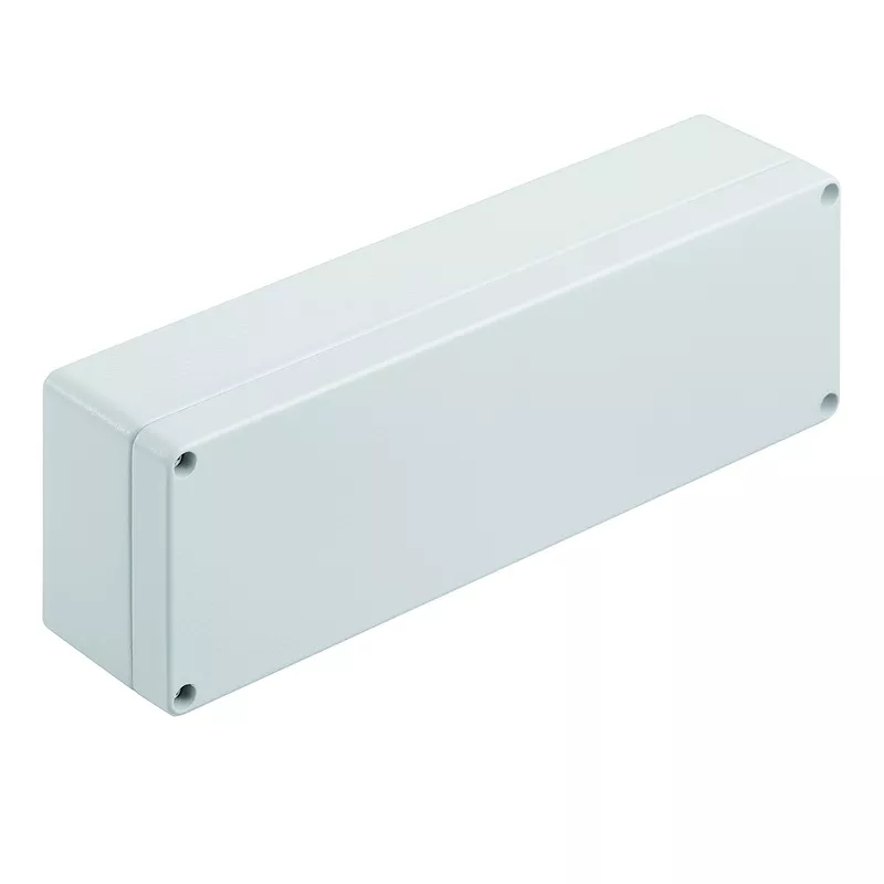 Obudowa metalowa do zastosowań przemysłowych. Otwory mocujące znajdują się poza uszczelnionym obszarem. Montaż ścienny można uzyskać za pomocą otworów montażowych lub nóżek montażowych.
