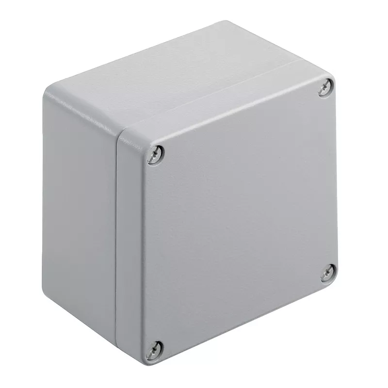 Obudowa metalowa do zastosowań przemysłowych. Otwory mocujące znajdują się poza uszczelnionym obszarem. Montaż ścienny można uzyskać za pomocą otworów montażowych lub nóżek montażowych.