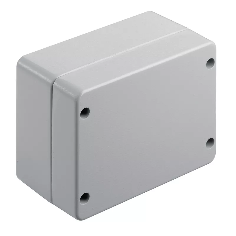 Obudowa metalowa do zastosowań przemysłowych. Otwory mocujące znajdują się poza uszczelnionym obszarem. Montaż ścienny można uzyskać za pomocą otworów montażowych lub nóżek montażowych.