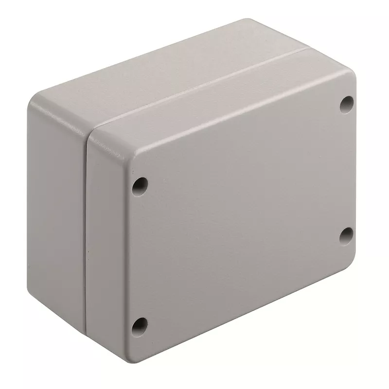 Obudowa metalowa do zastosowań przemysłowych. Otwory mocujące znajdują się poza uszczelnionym obszarem. Montaż ścienny można uzyskać za pomocą otworów montażowych lub nóżek montażowych.