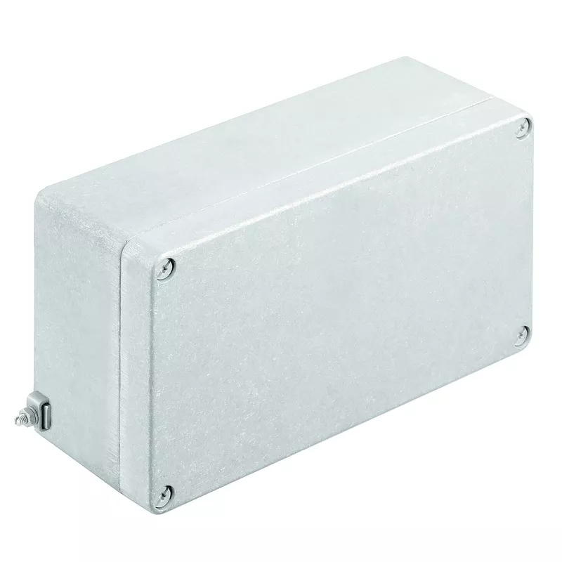 Zmontowana obudowa do stref zagrożenia wybuchem. Otwory mocujące znajdują się poza uszczelnionym obszarem. Montaż ścienny można uzyskać za pomocą otworów montażowych lub nóżek montażowych.