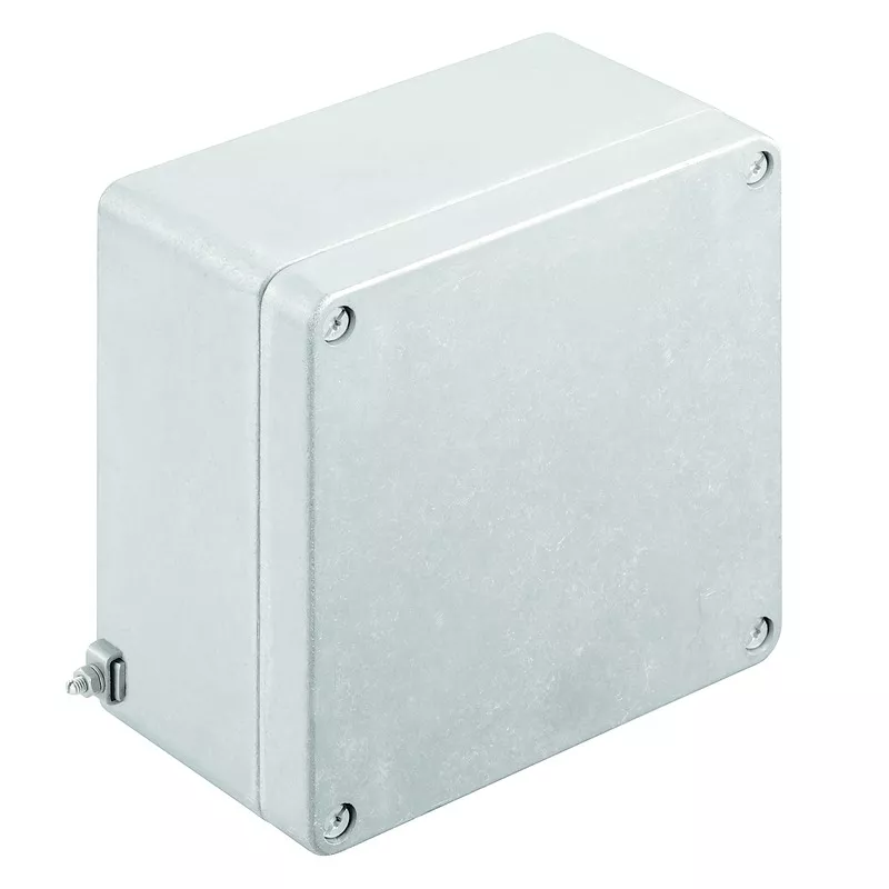 Zmontowana obudowa do stref zagrożenia wybuchem. Otwory mocujące znajdują się poza uszczelnionym obszarem. Montaż ścienny można uzyskać za pomocą otworów montażowych lub nóżek montażowych.