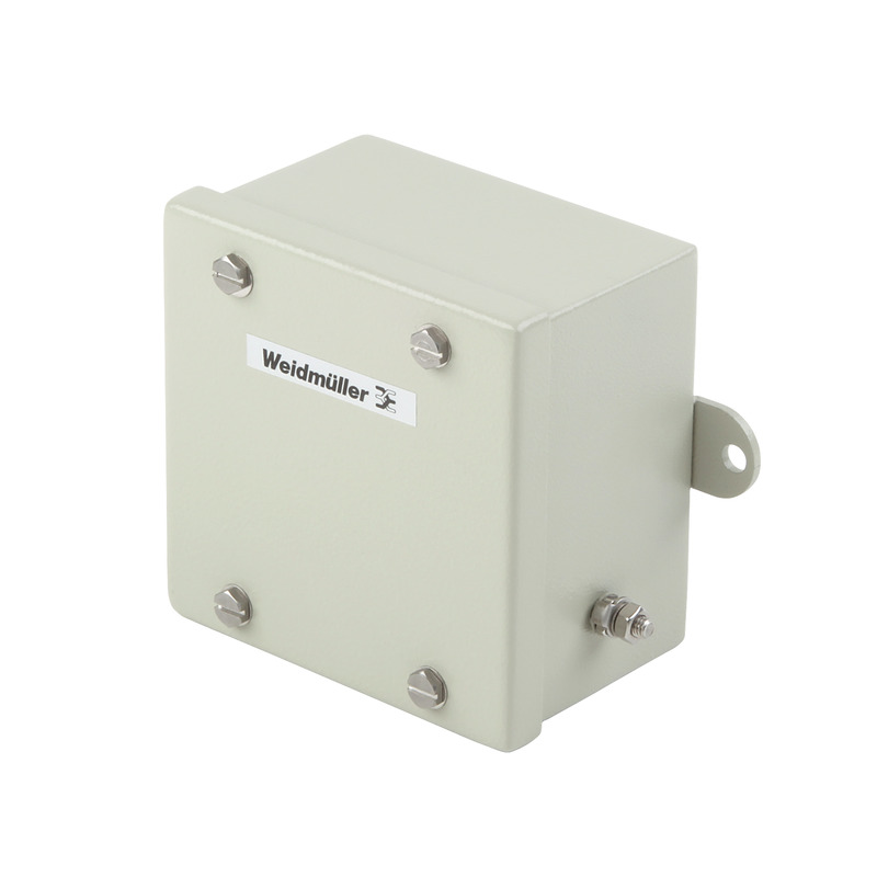 Obudowa metalowa do zastosowań przemysłowych. Otwory mocujące znajdują się poza uszczelnionym obszarem. Montaż ścienny można uzyskać za pomocą otworów montażowych lub nóżek montażowych.