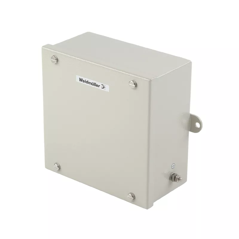 Obudowa metalowa do zastosowań przemysłowych. Otwory mocujące znajdują się poza uszczelnionym obszarem. Montaż ścienny można uzyskać za pomocą otworów montażowych lub nóżek montażowych.