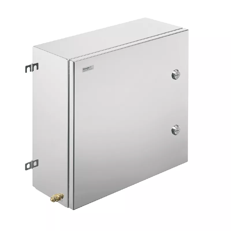 Zmontowana obudowa do stref zagrożenia wybuchem. Otwory mocujące znajdują się poza uszczelnionym obszarem. Montaż ścienny można uzyskać za pomocą otworów montażowych lub nóżek montażowych.