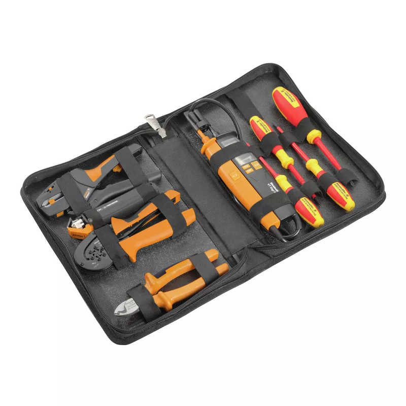 Torba narzędziowa do transportu narzędzi do zaciskania do końcówek kablowych, złącz oraz końcówek tulejkowych, z wymiennymi wkładkami