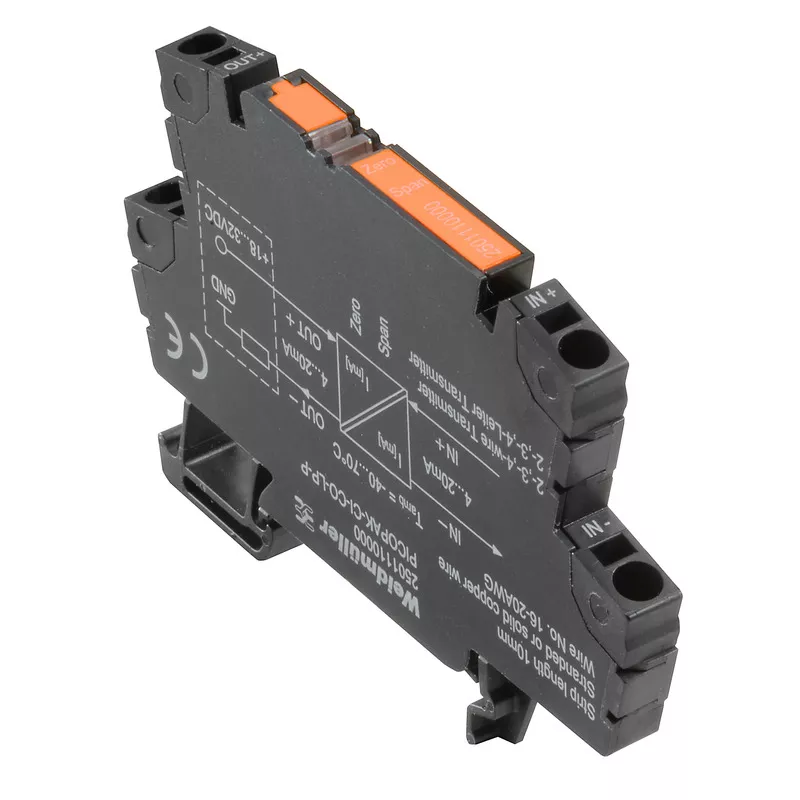 Wzmacniacz izolacyjny do rejestracji parametrów elektrycznych i fizycznych. Z izolacją elektryczną, uniwersalne zastosowanie.