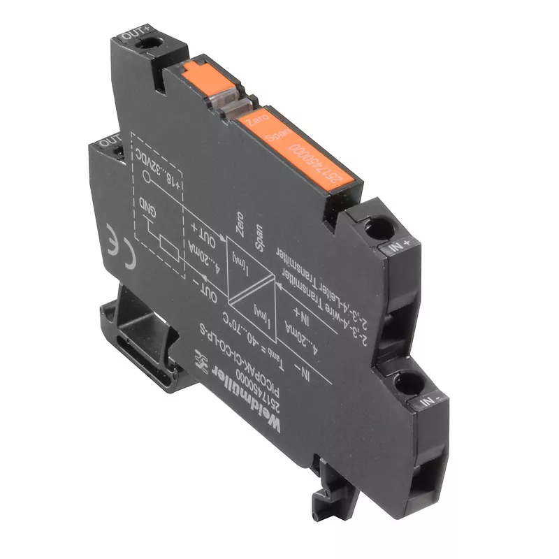 Wzmacniacz izolacyjny do rejestracji parametrów elektrycznych i fizycznych. Z izolacją elektryczną, uniwersalne zastosowanie.