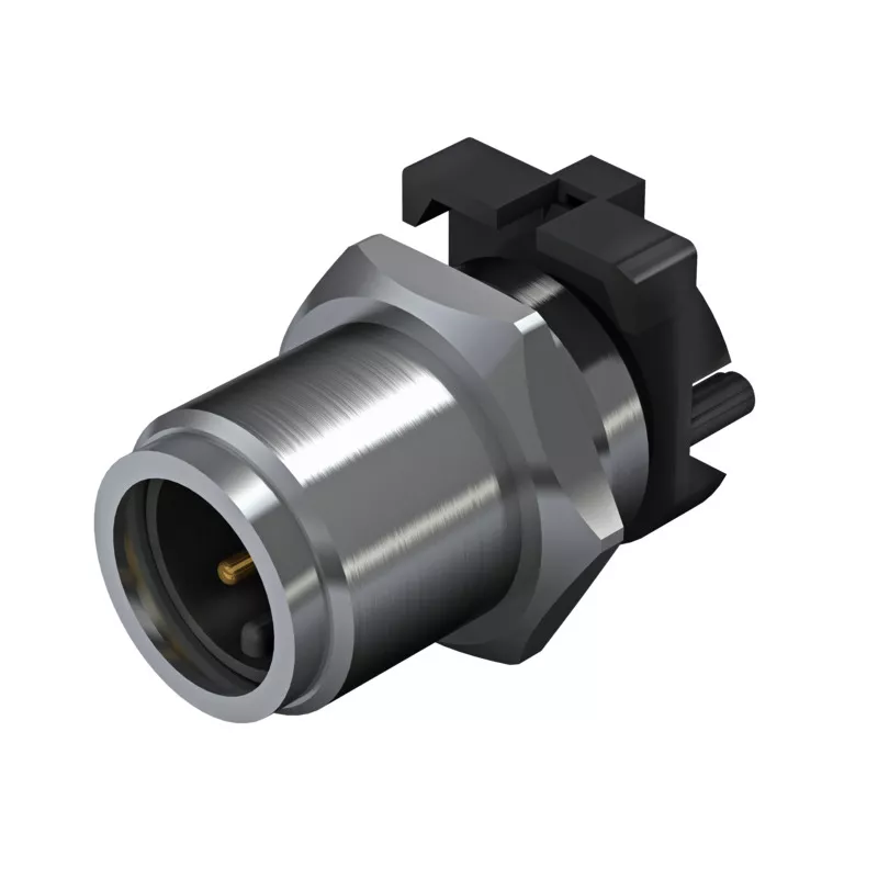 Okrągłe złącze do przesyłu prądu. Złącze wtykowe jest lutowane bezpośrednio na PCB. Kompaktowa konstrukcja z dużą gęstością prądu.