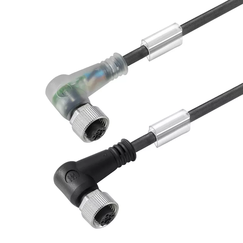 Zmontowany przewód czujnik-siłownik do podłączenia czujników lub elementów wykonawczych oraz do transmisji danych. Złącza wtykowe są formowane i testowane.
