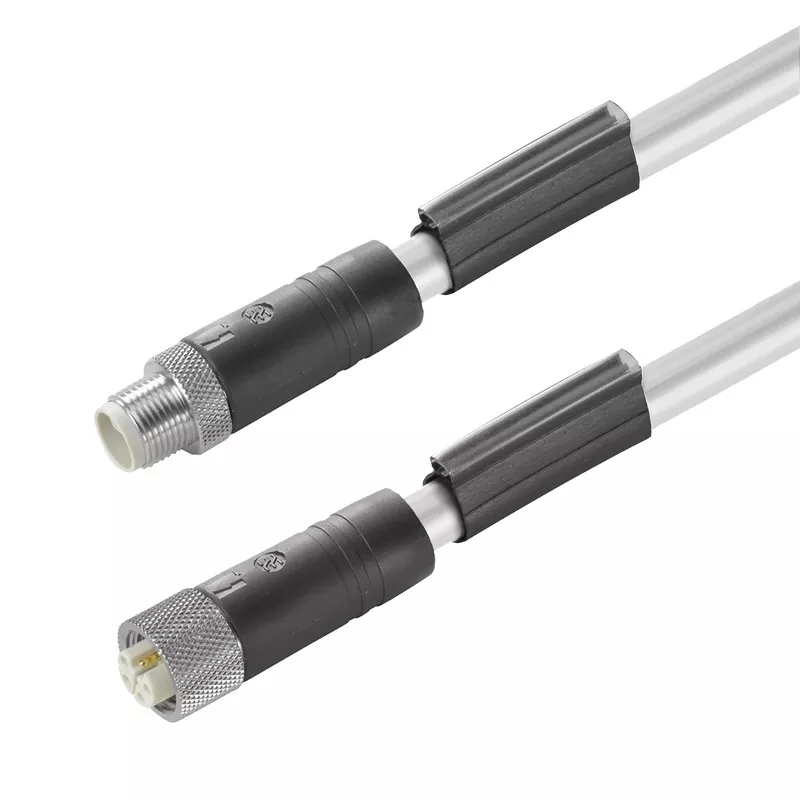 Zmontowany przewód czujnik-siłownik do podłączenia czujników lub elementów wykonawczych oraz do transmisji danych. Złącza wtykowe są formowane i testowane.