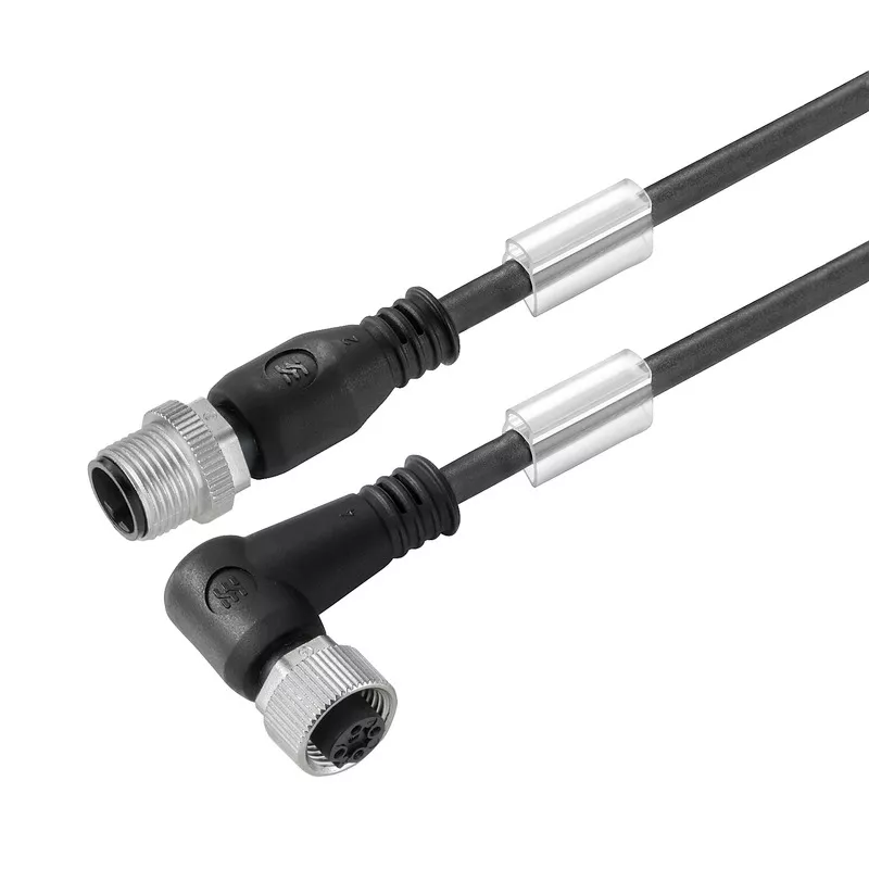Zmontowany przewód czujnik-siłownik do podłączenia czujników lub elementów wykonawczych oraz do transmisji danych. Złącza wtykowe są formowane i testowane.
