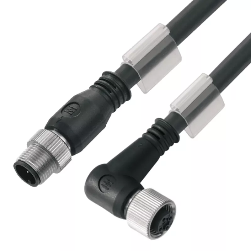 Zmontowany przewód czujnik-siłownik do podłączenia czujników lub elementów wykonawczych oraz do transmisji danych. Złącza wtykowe są formowane i testowane.