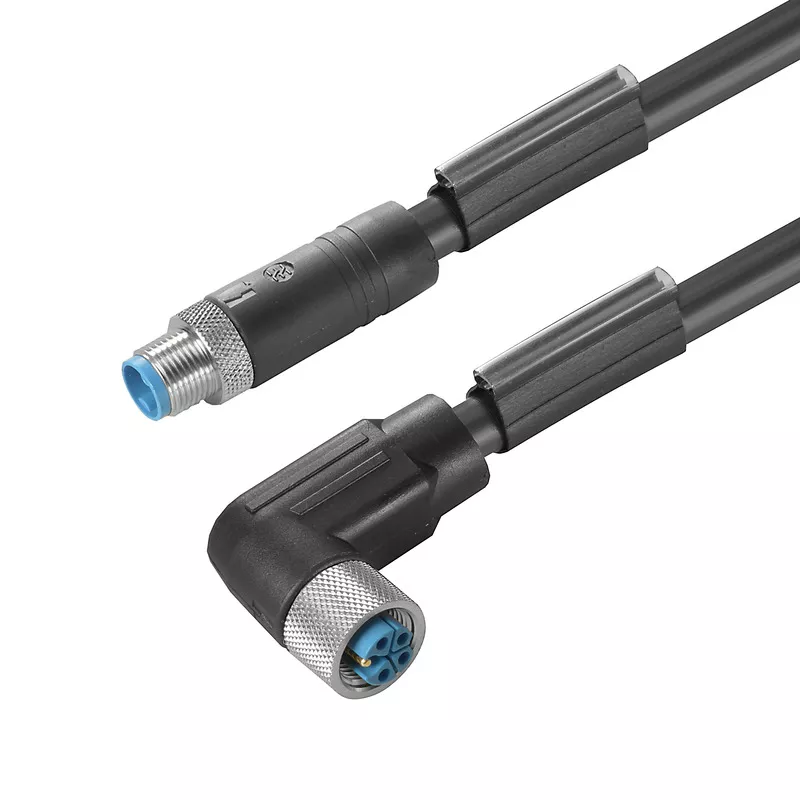 Zmontowany przewód czujnik-siłownik do podłączenia czujników lub elementów wykonawczych oraz do transmisji danych. Złącza wtykowe są formowane i testowane.