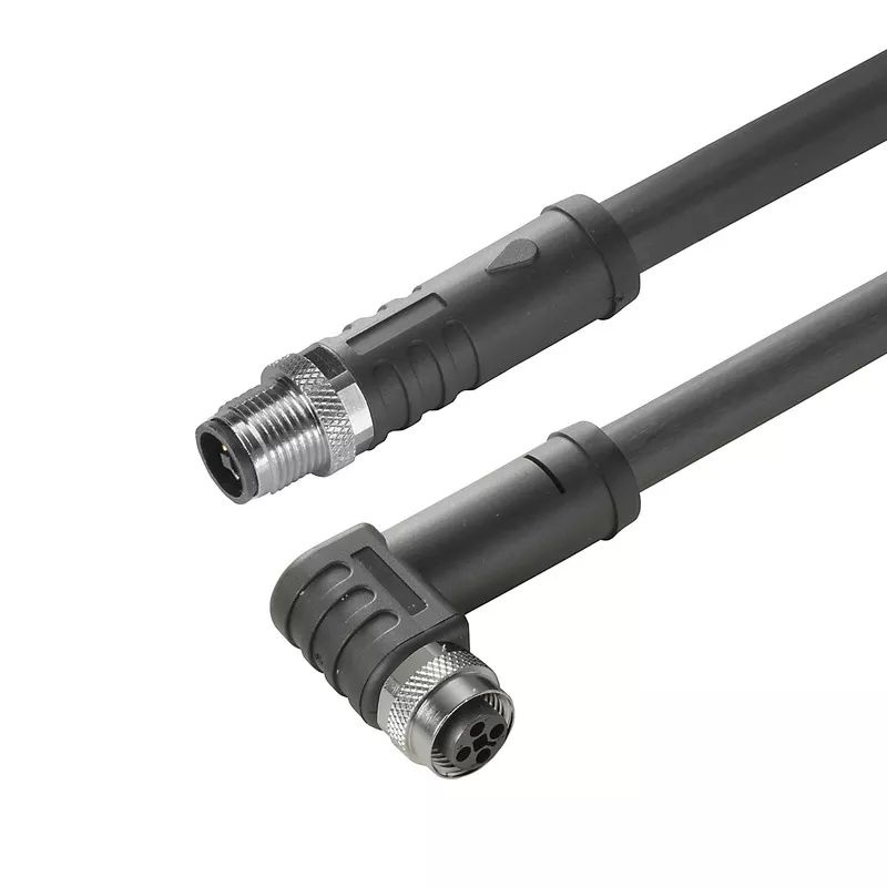 Zmontowany przewód czujnik-siłownik do podłączenia czujników lub elementów wykonawczych oraz do transmisji danych. Złącza wtykowe są formowane i testowane.