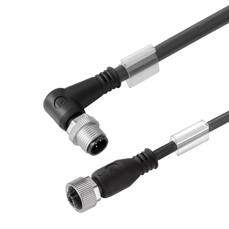 Zmontowany przewód czujnik-siłownik do podłączenia czujników lub elementów wykonawczych oraz do transmisji danych. Złącza wtykowe są formowane i testowane.