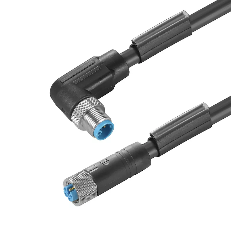 Zmontowany przewód czujnik-siłownik do podłączenia czujników lub elementów wykonawczych oraz do transmisji danych. Złącza wtykowe są formowane i testowane.