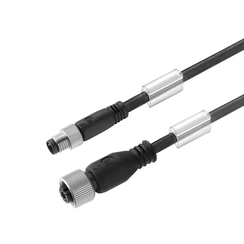 Zmontowany przewód czujnik-siłownik do podłączenia czujników lub elementów wykonawczych oraz do transmisji danych. Złącza wtykowe są formowane i testowane.