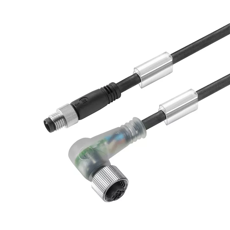 Zmontowany przewód czujnik-siłownik do podłączenia czujników lub elementów wykonawczych oraz do transmisji danych. Złącza wtykowe są formowane i testowane.