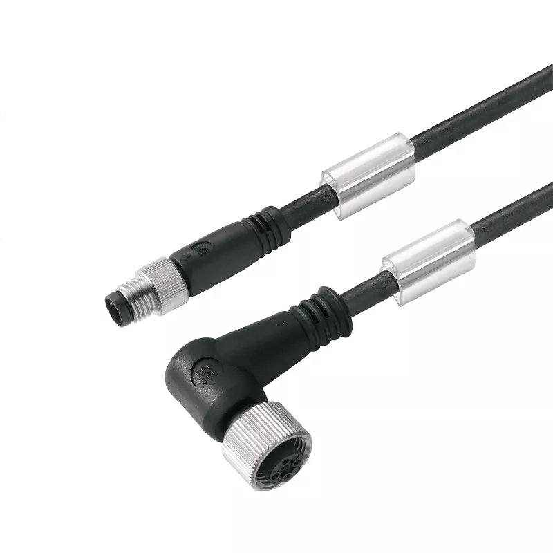 Zmontowany przewód czujnik-siłownik do podłączenia czujników lub elementów wykonawczych oraz do transmisji danych. Złącza wtykowe są formowane i testowane.