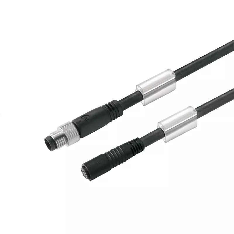 Zmontowany przewód czujnik-siłownik do podłączenia czujników lub elementów wykonawczych oraz do transmisji danych. Złącza wtykowe są formowane i testowane.