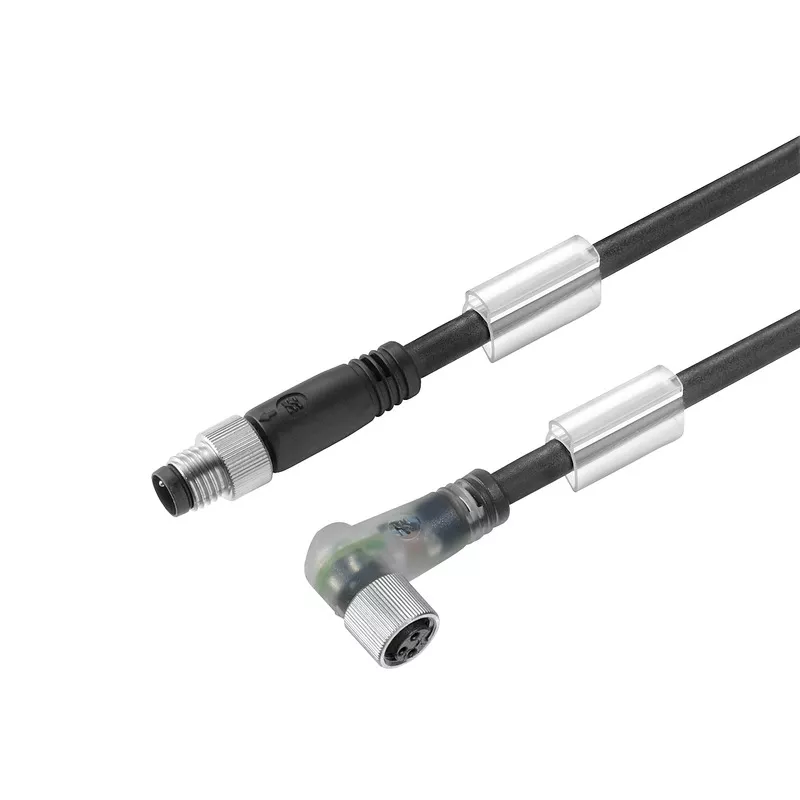 Zmontowany przewód czujnik-siłownik do podłączenia czujników lub elementów wykonawczych oraz do transmisji danych. Złącza wtykowe są formowane i testowane.