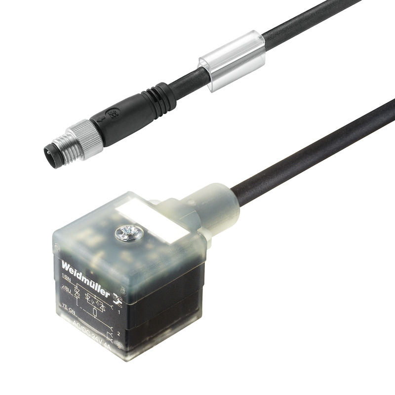 Przewód łączący z zaworem. Zawór posiada wskaźnik stanu roboczego (LED) i ochronny obwód tłumiący.