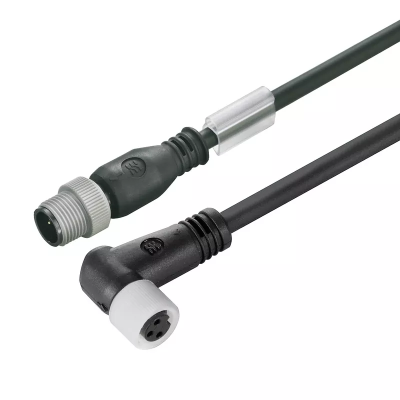 Zmontowany przewód czujnik-siłownik do podłączenia czujników lub elementów wykonawczych oraz do transmisji danych. Złącza wtykowe są formowane i testowane.