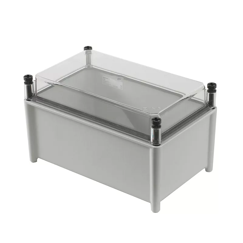 Obudowa z tworzywa sztucznego do urządzeń elektrycznych, elektromechanicznych i pneumatycznych oraz PBC. Nadaje się do stosowania w środowiskach wymagających pod względem mechanicznym i chemicznym. Montaż ścienny można uzyskać za pomocą otworów montażowych lub nóżek montażowych.