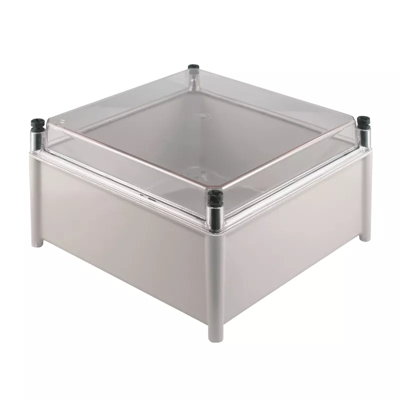 Obudowa z tworzywa sztucznego do urządzeń elektrycznych, elektromechanicznych i pneumatycznych oraz PBC. Nadaje się do stosowania w środowiskach wymagających pod względem mechanicznym i chemicznym. Montaż ścienny można uzyskać za pomocą otworów montażowych lub nóżek montażowych.