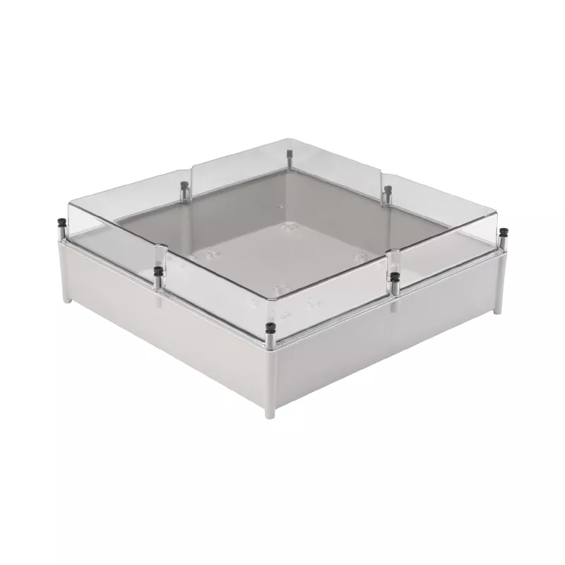 Obudowa z tworzywa sztucznego do urządzeń elektrycznych, elektromechanicznych i pneumatycznych oraz PBC. Nadaje się do stosowania w środowiskach wymagających pod względem mechanicznym i chemicznym. Montaż ścienny można uzyskać za pomocą otworów montażowych lub nóżek montażowych.