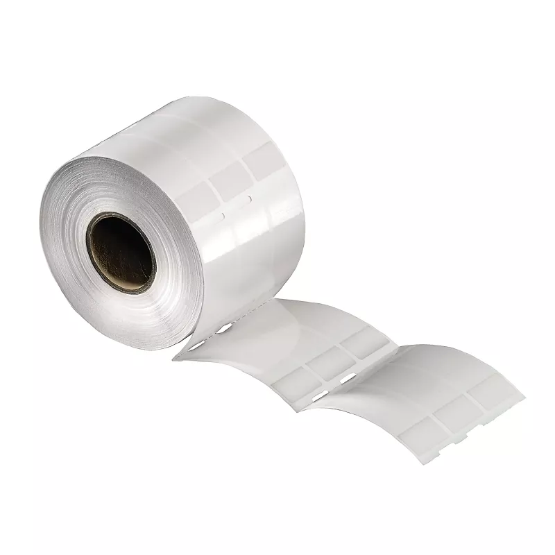 Bezhalogenowe, niskoemisyjne znaczniki do przewodów i kabli. Mocowanie za pomocą opasek kablowych.