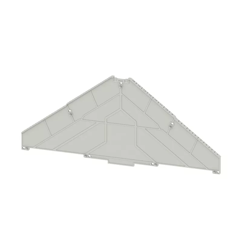 Ściana działowa do elektrycznej separacji kostek zaciskowych w sąsiednich połączeniach krzyżowych. Płyta rozdzielająca służy również do optycznie rozpoznawalnej separacji obwodów elektrycznych w celu uniknięcia błędów w okablowaniu..