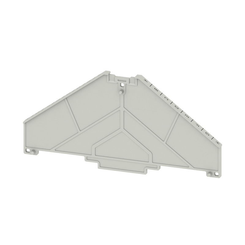 Ściana działowa do elektrycznej separacji kostek zaciskowych w sąsiednich połączeniach krzyżowych. Płyta rozdzielająca służy również do optycznie rozpoznawalnej separacji obwodów elektrycznych w celu uniknięcia błędów w okablowaniu..