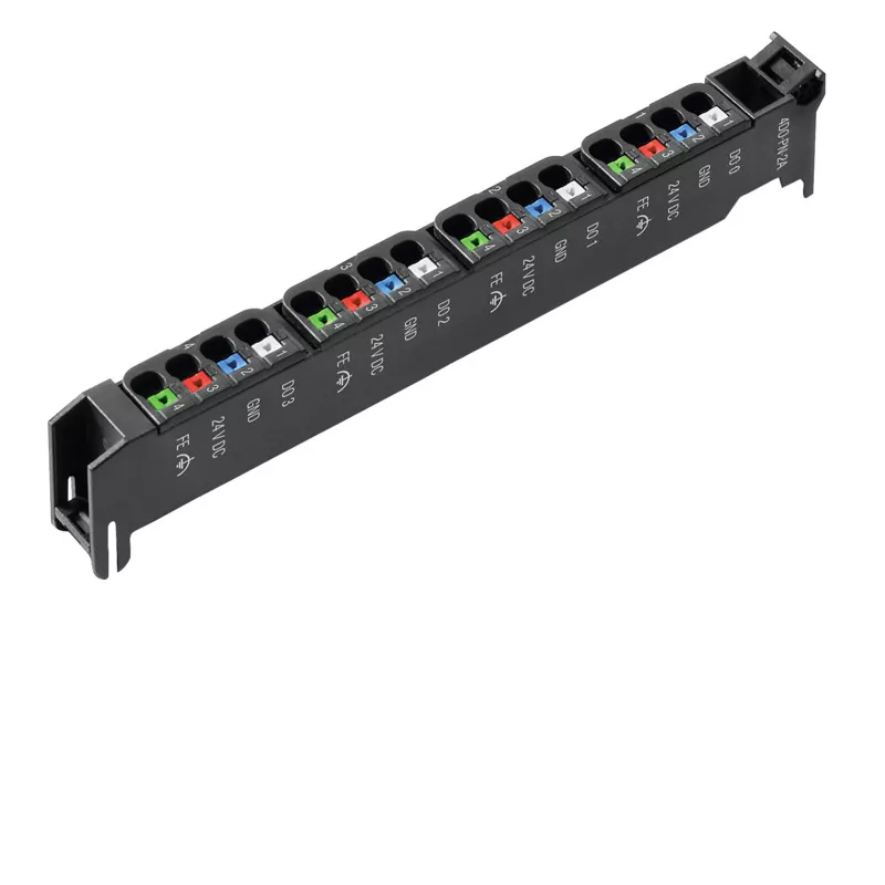 Jednostka wtyczki systemu IO. Jednostka wtyczki zbiera złącza i prowadzi je do modułu elektronicznego.