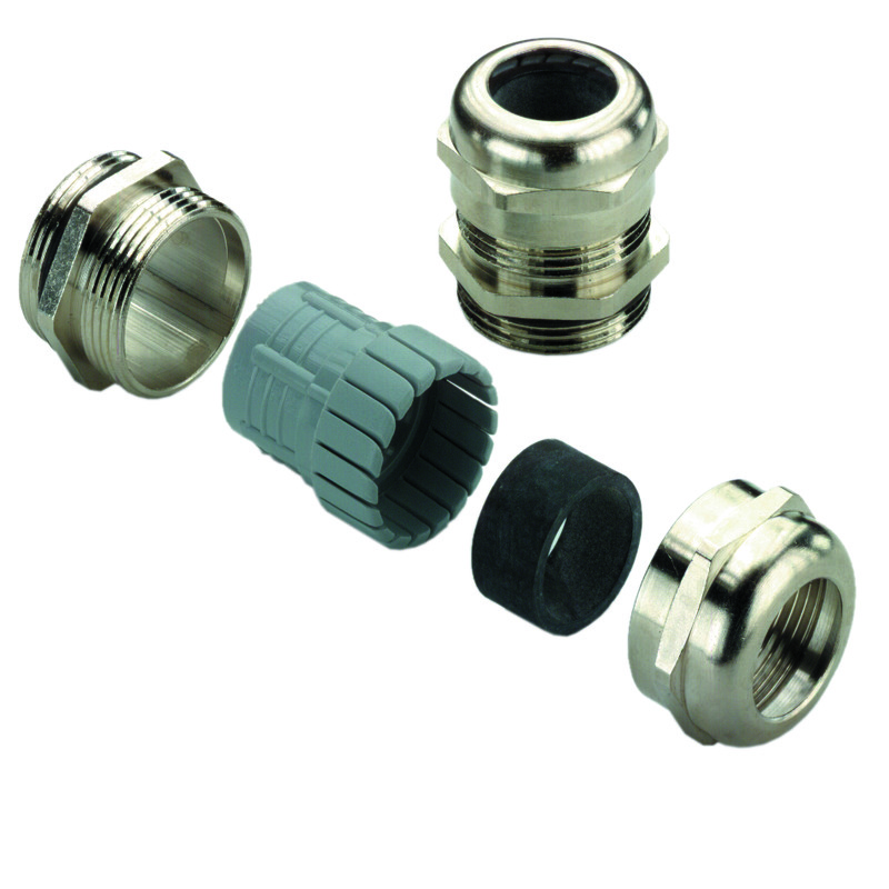 Metalowa dławnica kablowa używana do plombowania obudowy podczas wkładania przewodów. Z odciążeniem.