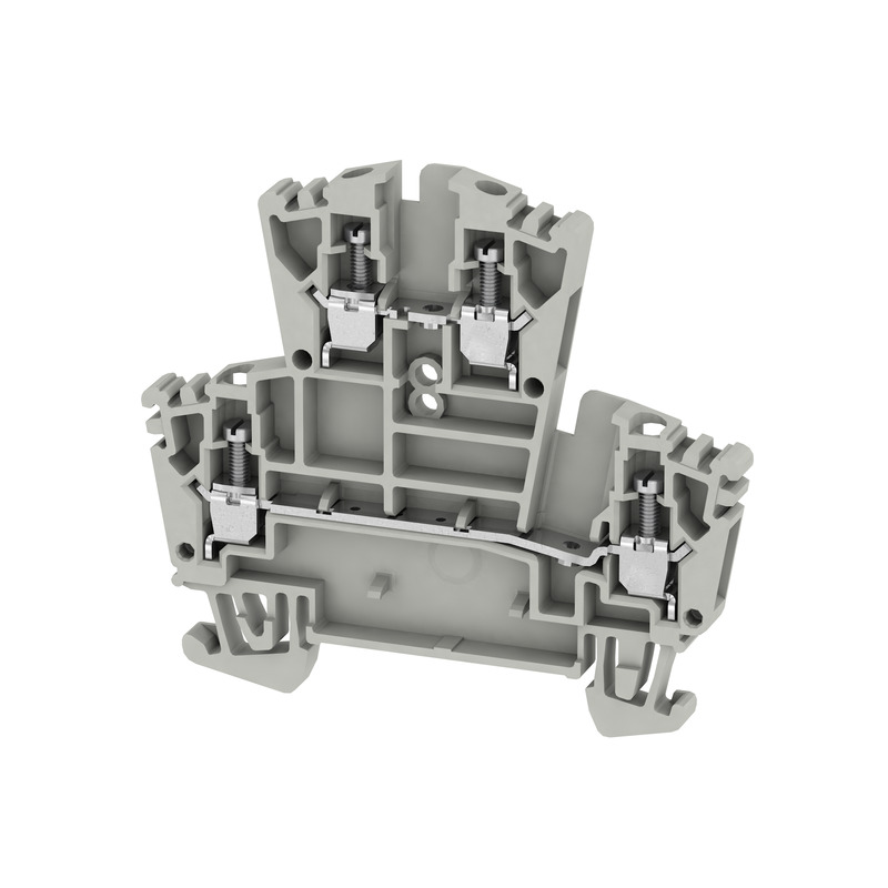Blok zaciskowy z wieloma poziomami służący w celu podłączenia lub połączenia przewodników ze stałym bezpiecznym kontaktem. Hartowana stal wytrzyma przeciążenia, miedź powlekana cyną zapewnia najlepsze przewodnictwo. Kompaktowa konstrukcja.