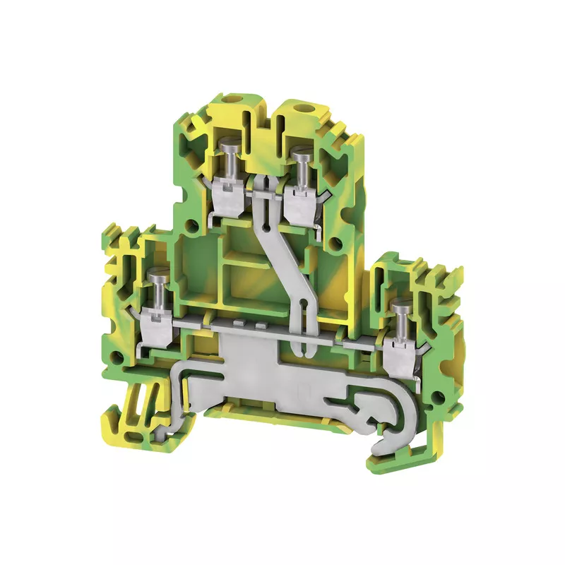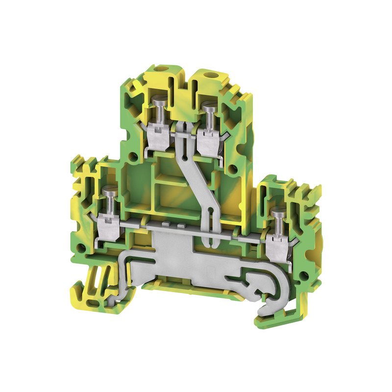Złączka szeregowa ze stykiem do szyny montażowej do podłączania przewodów ochronnych na kilku piętrach.